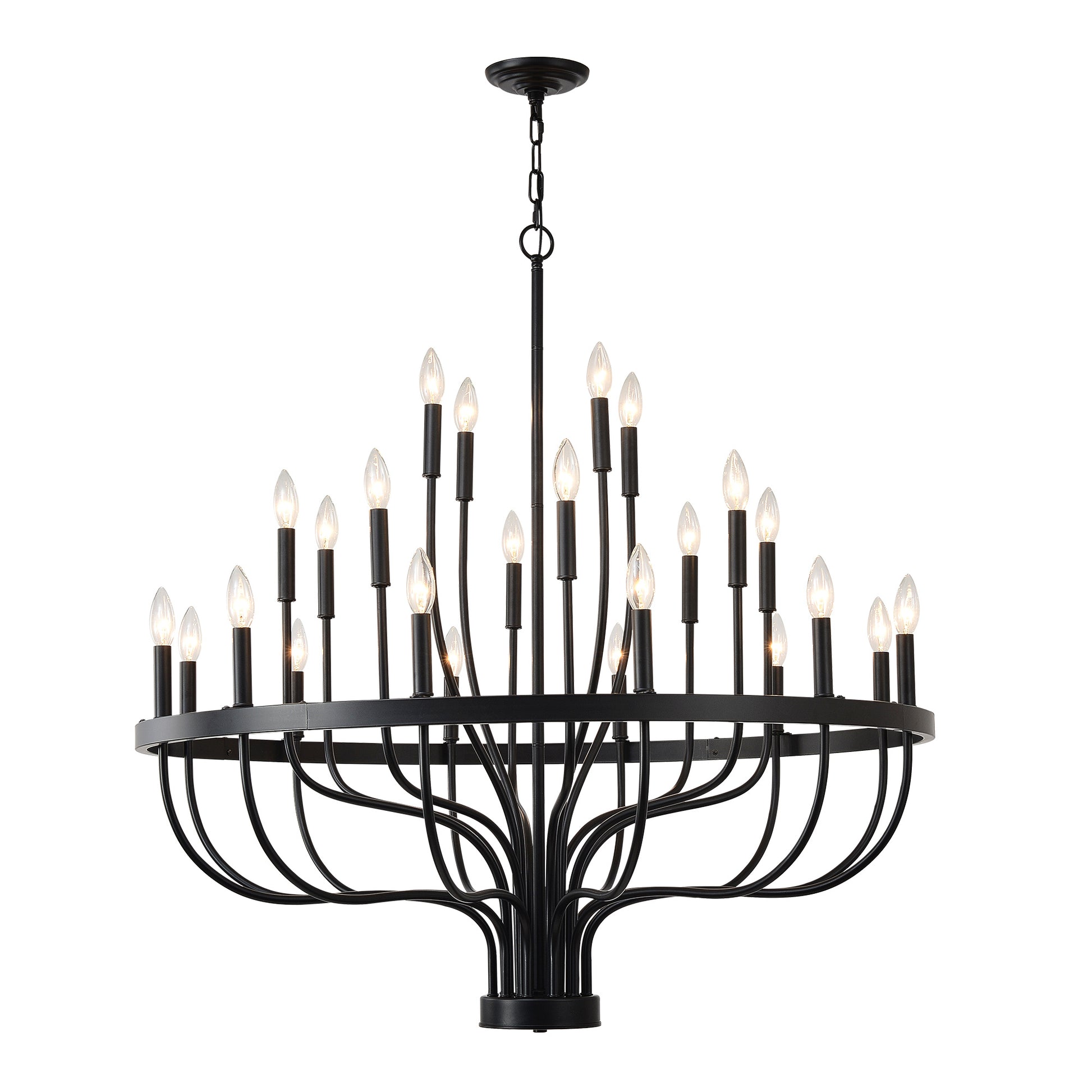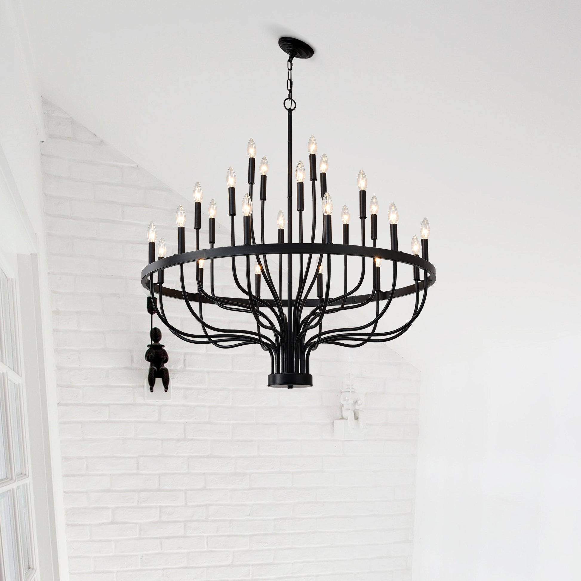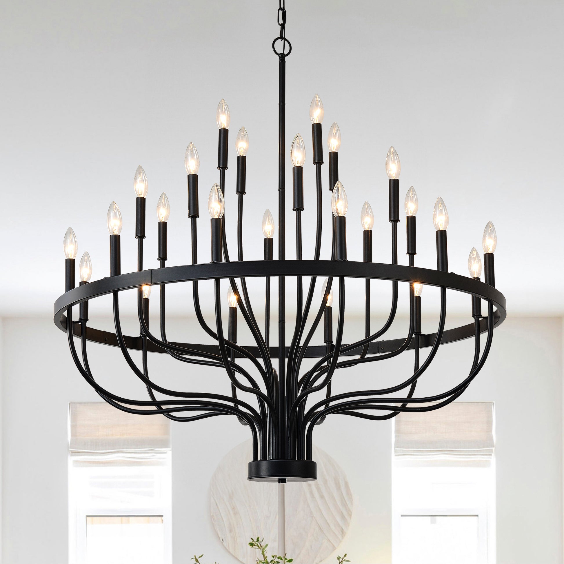 24-Light Black Chandelier Industrial Iron Candle Chandelier