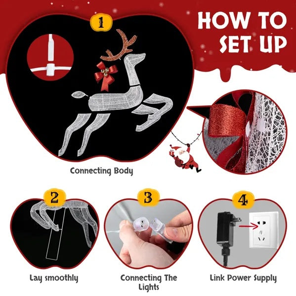 4. Easy Assembly & Storage: This collapsible reindeer set can be set up in minutes, allowing you to enjoy your festive display without hassle. The lights are pre-installed, simply connect the wires and plug them in to watch them come to life.