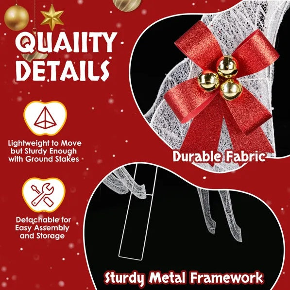 3. Weather-Resistant and Sturdy Build: Made from a durable, rustproof metal frame with waterproof fabric, the reindeer set is built to withstand wind, rain, and snow. The included ground stakes provide extra stability, ensuring your decorations stay secure in winter weather.