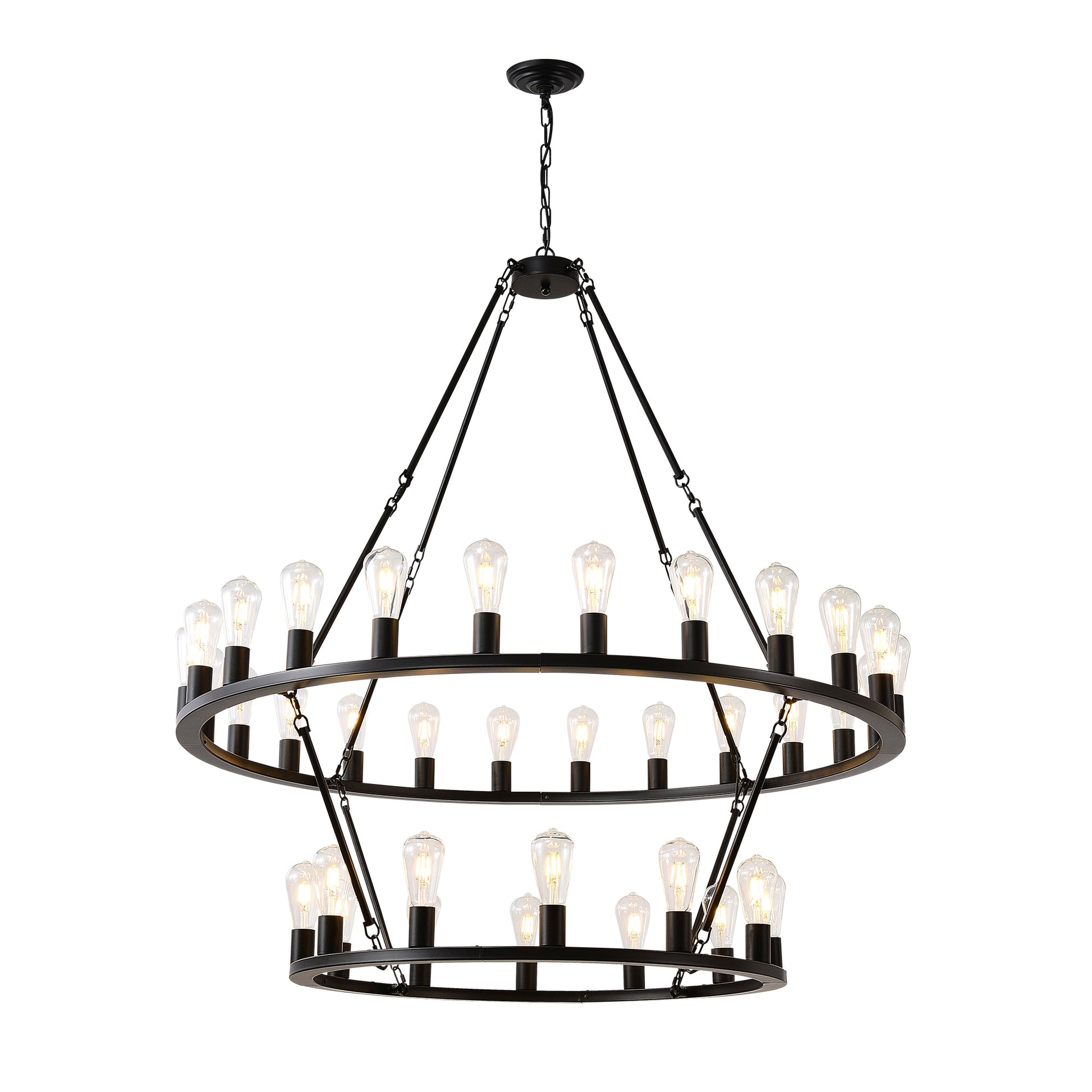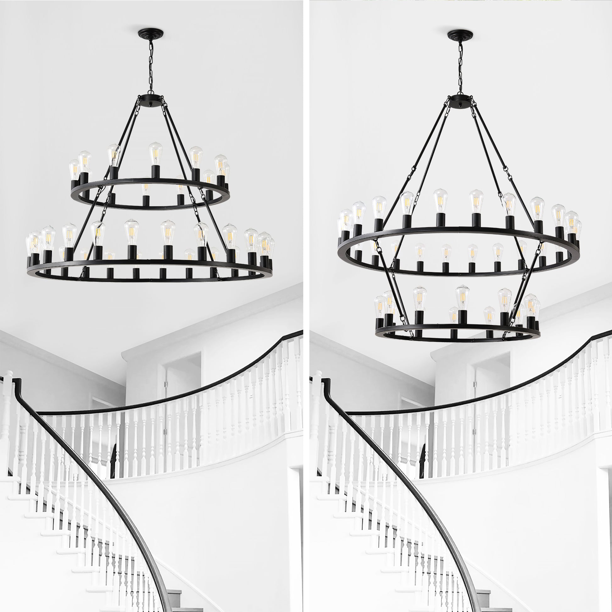 Product Name:48 Inch Black Extra Large Wagon Wheel Chandelier, 2 Tier 36-Lights(No Include) Farmhouse Industrial Round High Ceiling Pendant Light Adjustable Chain, for Dining Room, Living Room,Kitchen