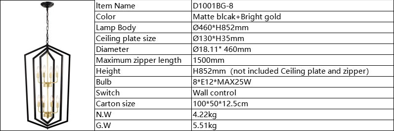 - 【Bulb Type】 The kitchen light fixtures is equipped with 8*E12 socket base. The recommended maximum power of each bulb is 40W.