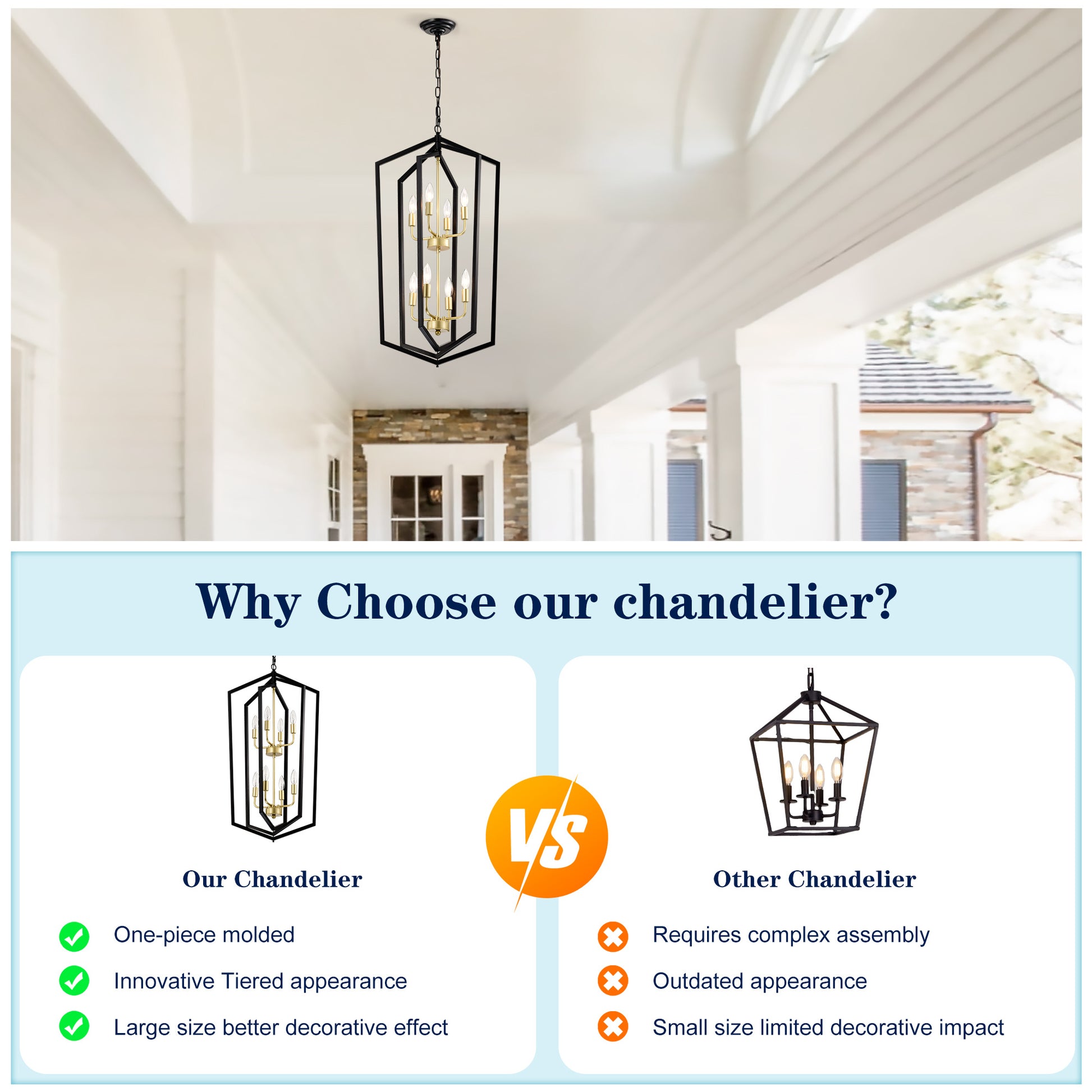 Product Name:8-Light Lantern Tired Farmhouse Ceiling Hanging Light Black Chandelier Metal Modern Pendant Light Fixtures for Kitchen Island Dining Room Living Room Foyer Entryway(E12 Bulbs Not Included)
