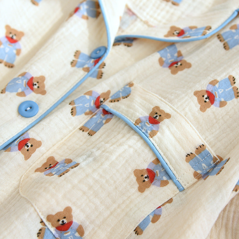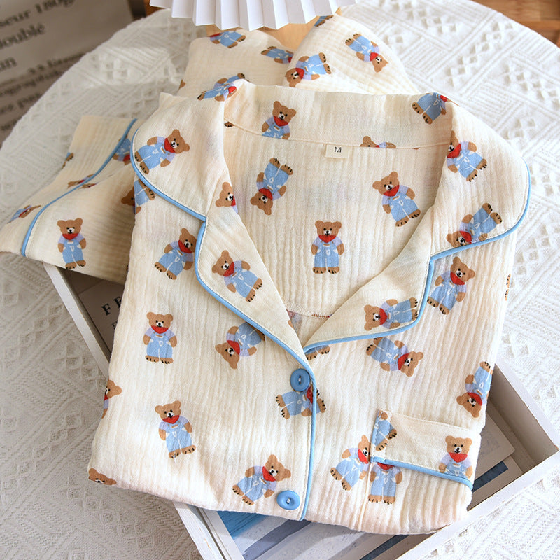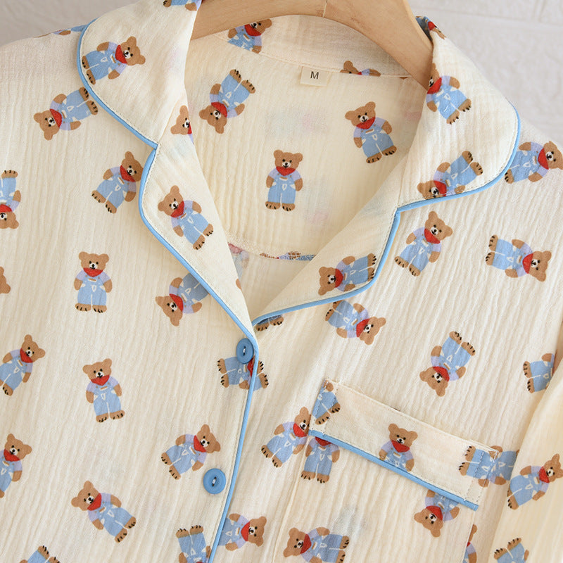 Crepe Cotton Pajamas Women's Long-sleeved Trousers Homewear Suit