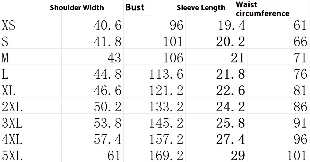 Size: XS,S,M,L,XL,2XL,3XL,4XL,5XL
