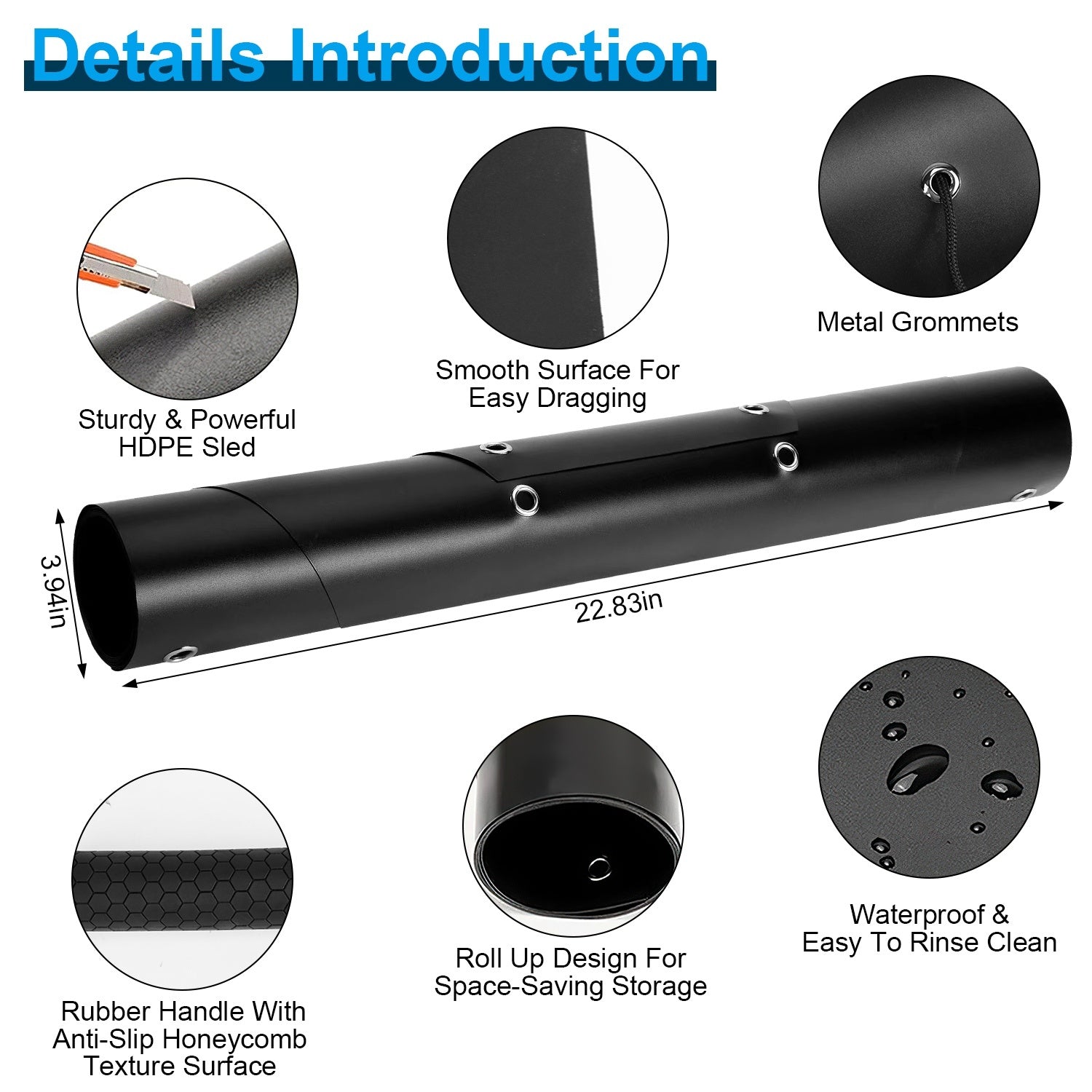 - Material: HDPE Sled, Nylon Rope, Rubber Handle