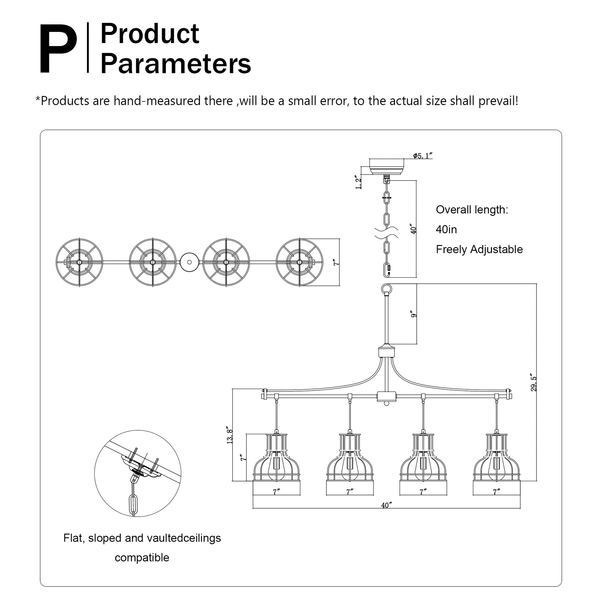 - Adjustable Height -- The farmhouse chandelier comes with 1 chain (1*39.37 inch). Maximum height of chandelier: 70inch.