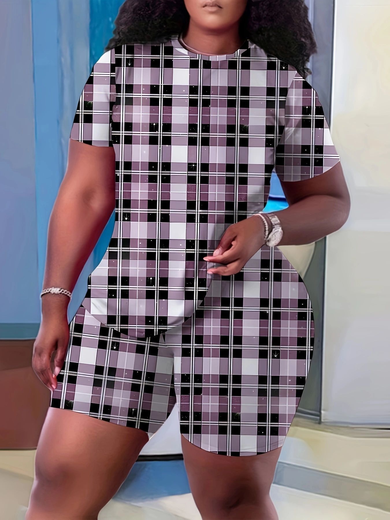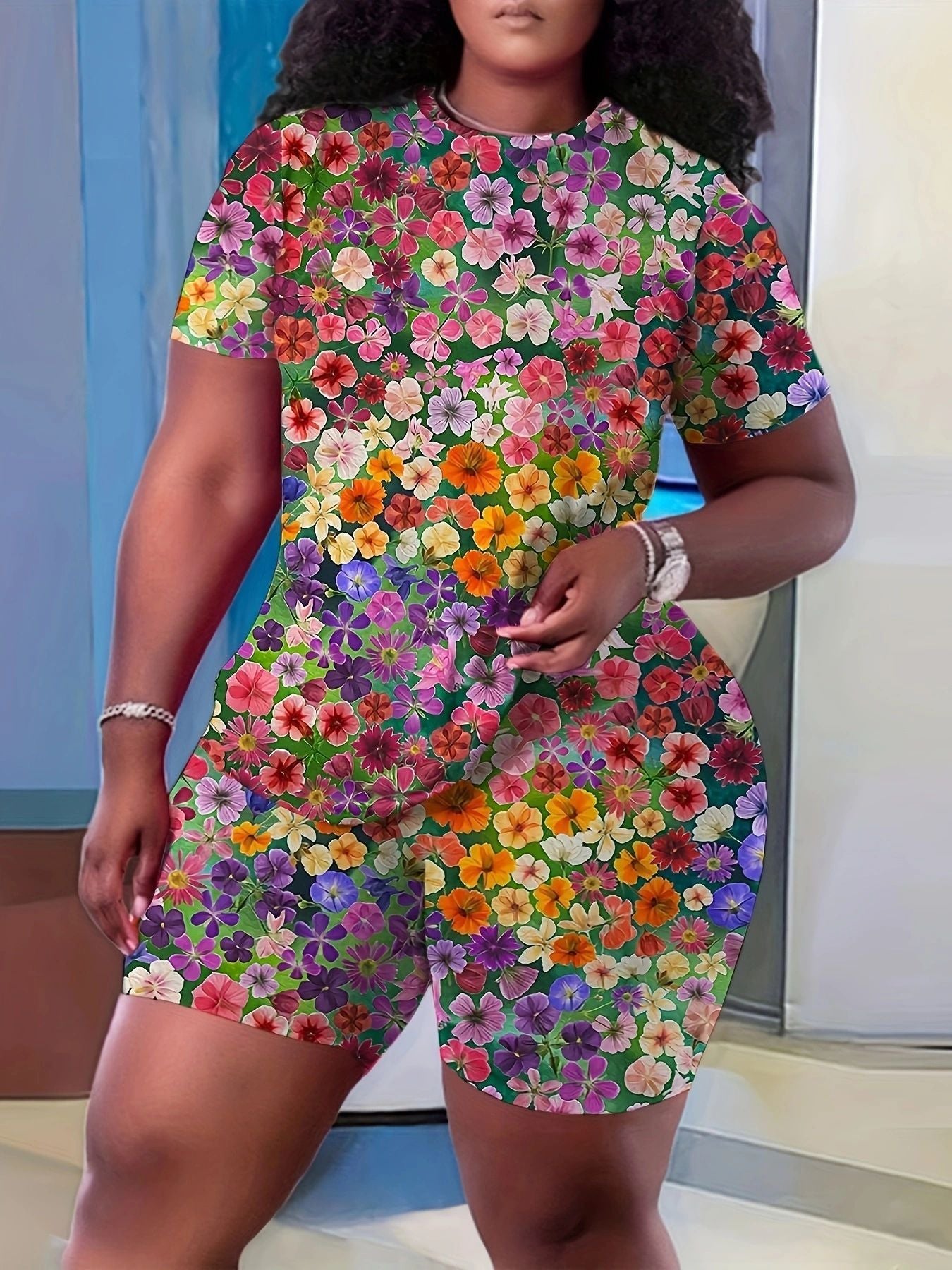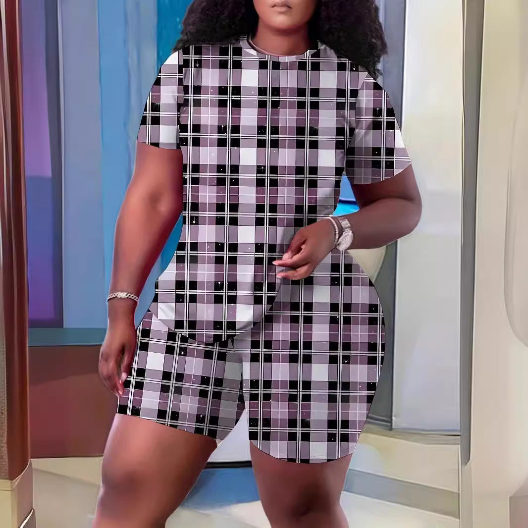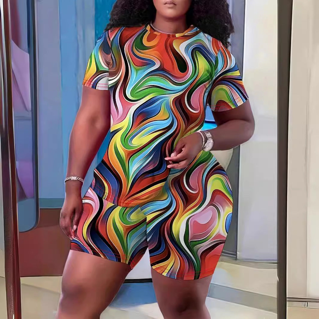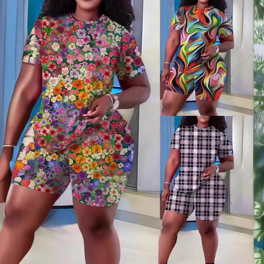 European And American Crew Neck Casual Printing Suit T-shirt And Shorts Two-piece Set