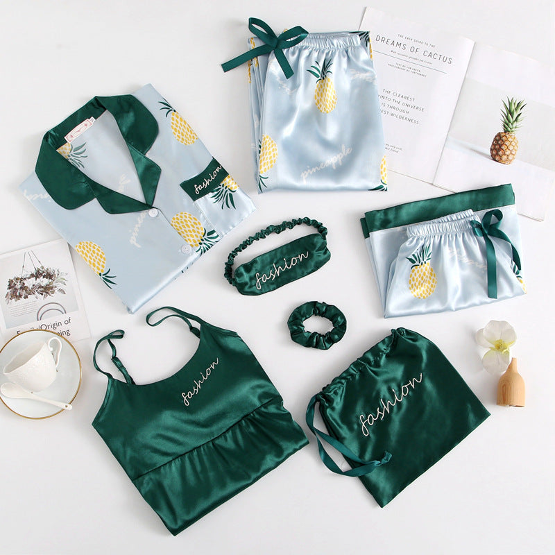 Spring And Autumn Printed Imitated Silk Pajamas Clothing