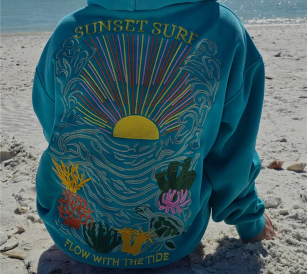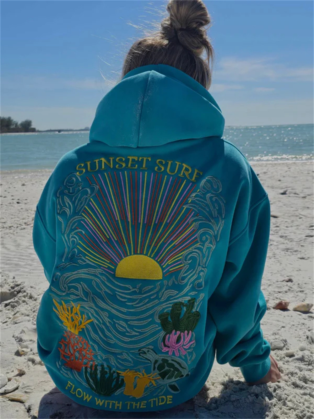 SUNFLOWER Embroidered Hoodie Sweater On The Sea