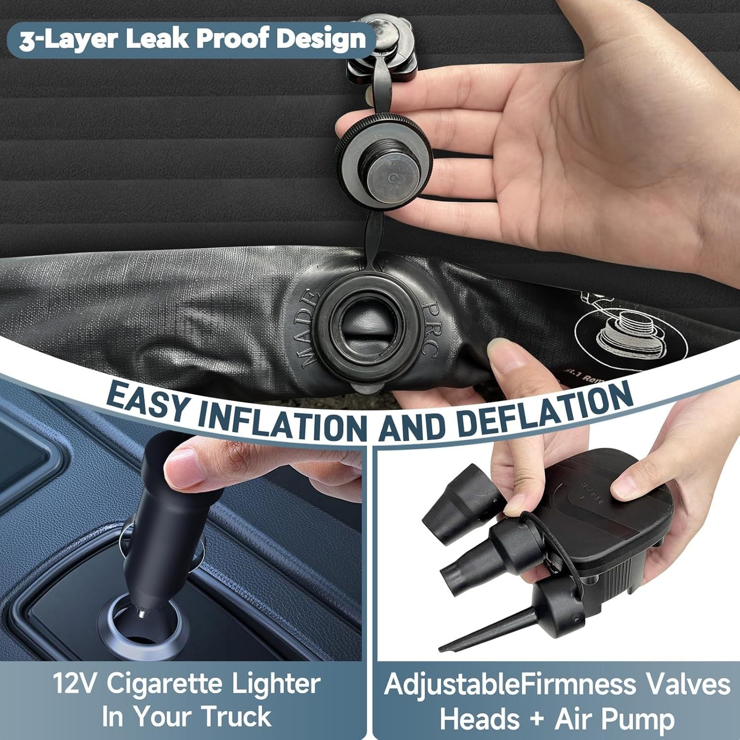 - 【SUPERB WEIGHT CAPACITY】This car camping air mattress has a weight capacity of up to 600 pounds, accommodating 2-3 persons simultaneously. Your Family sleep on the mattress and enjoy the boring time on the road. Use new bonding technology to make our car air bed leakproof, waterproof, sweatproof, easy to clean. Meanwhile it's also a camping tent bed!