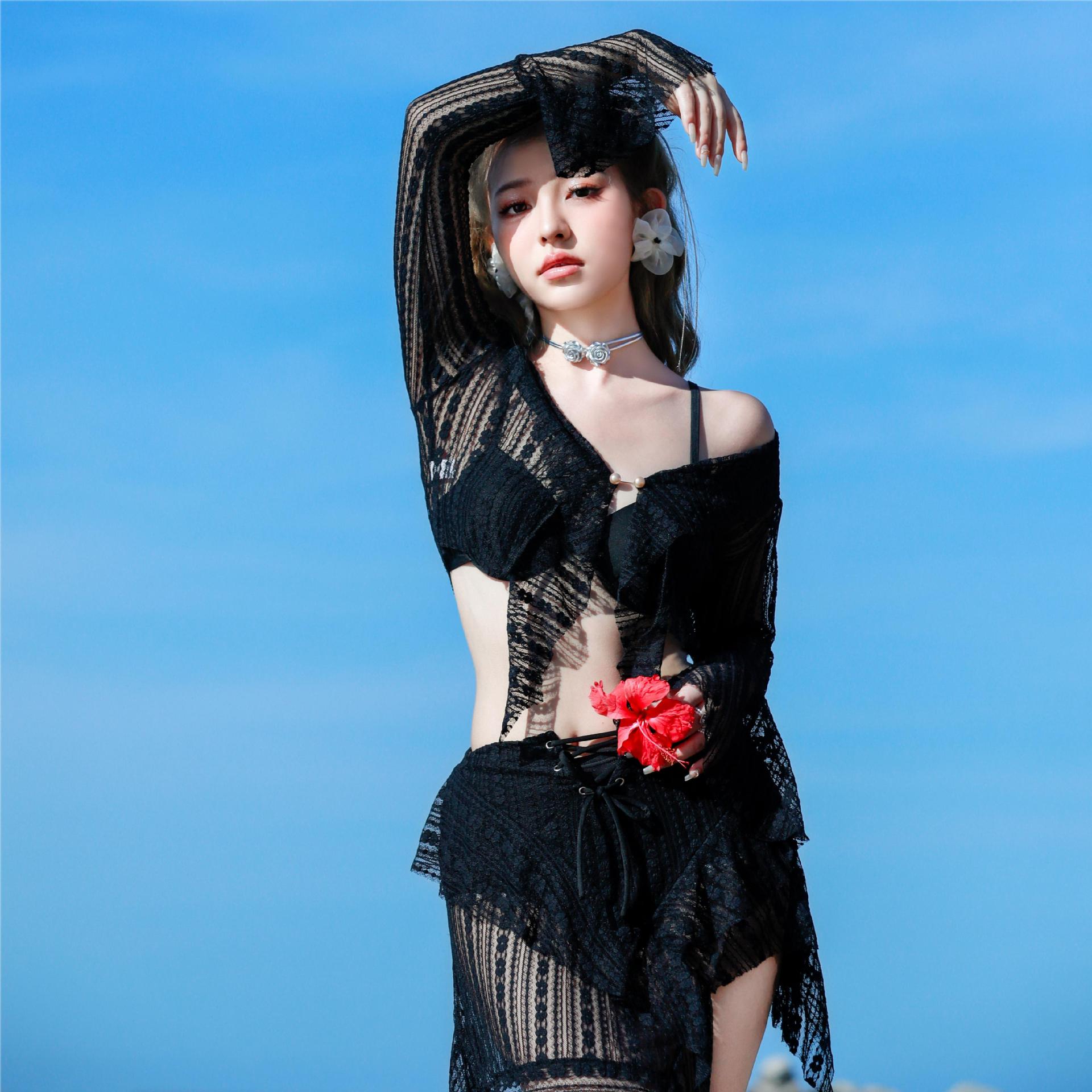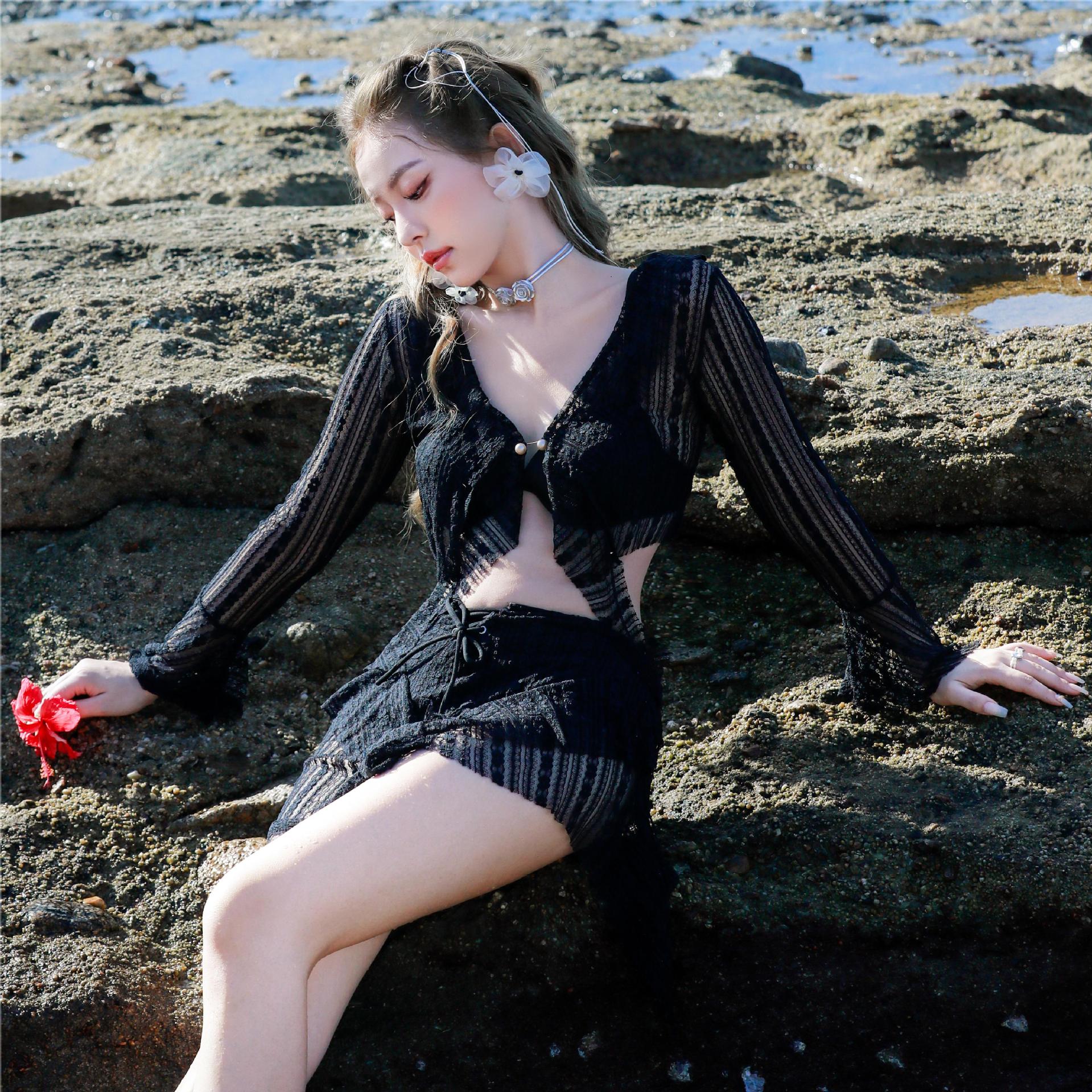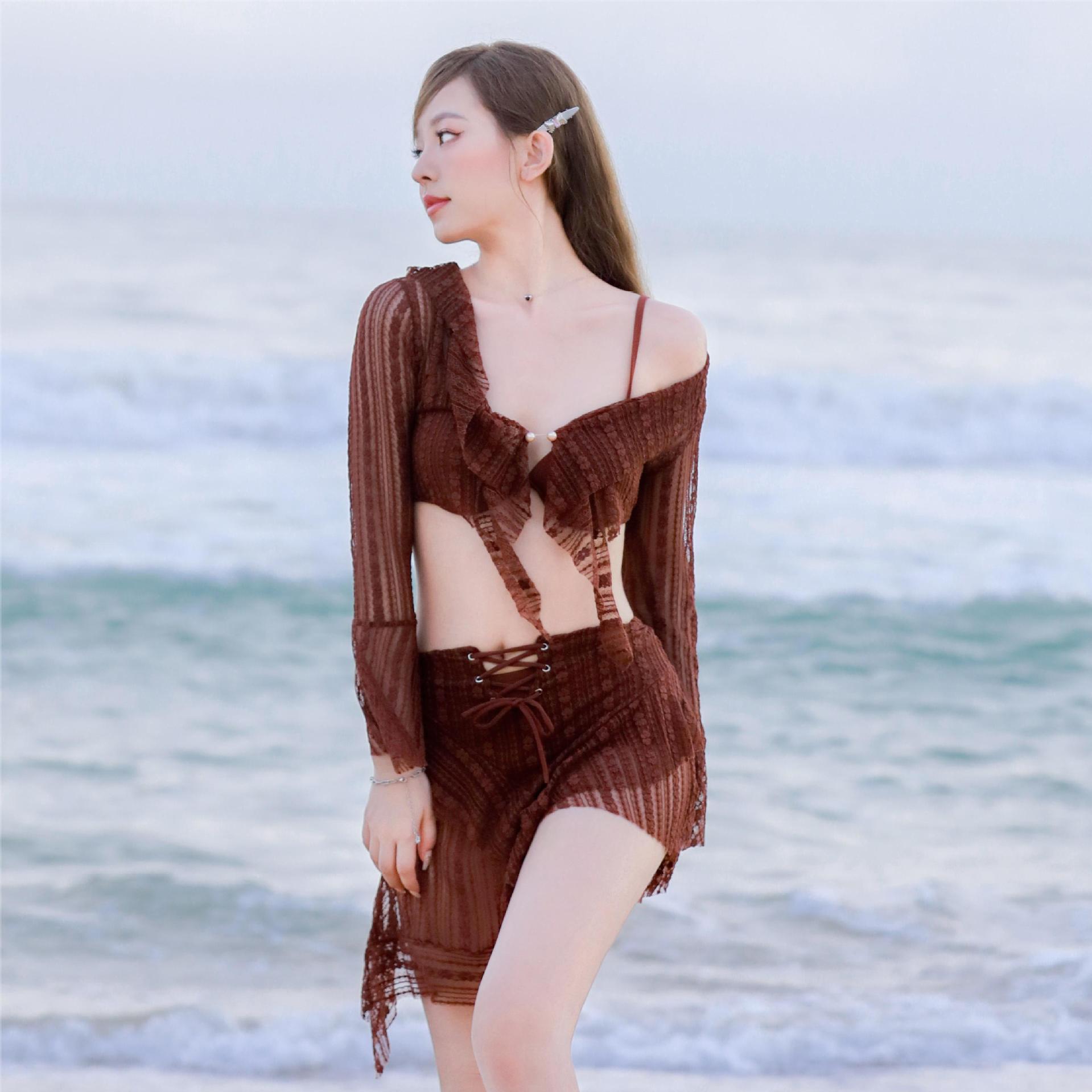 Women's Three-piece Lace Veils Boxer Swimsuit