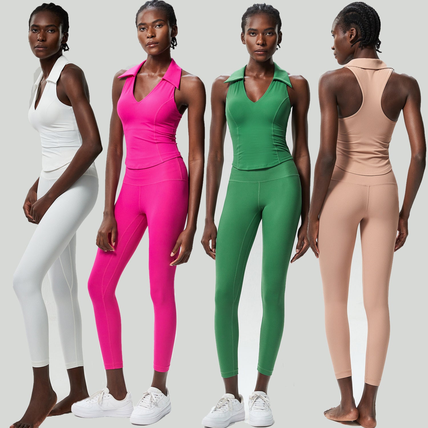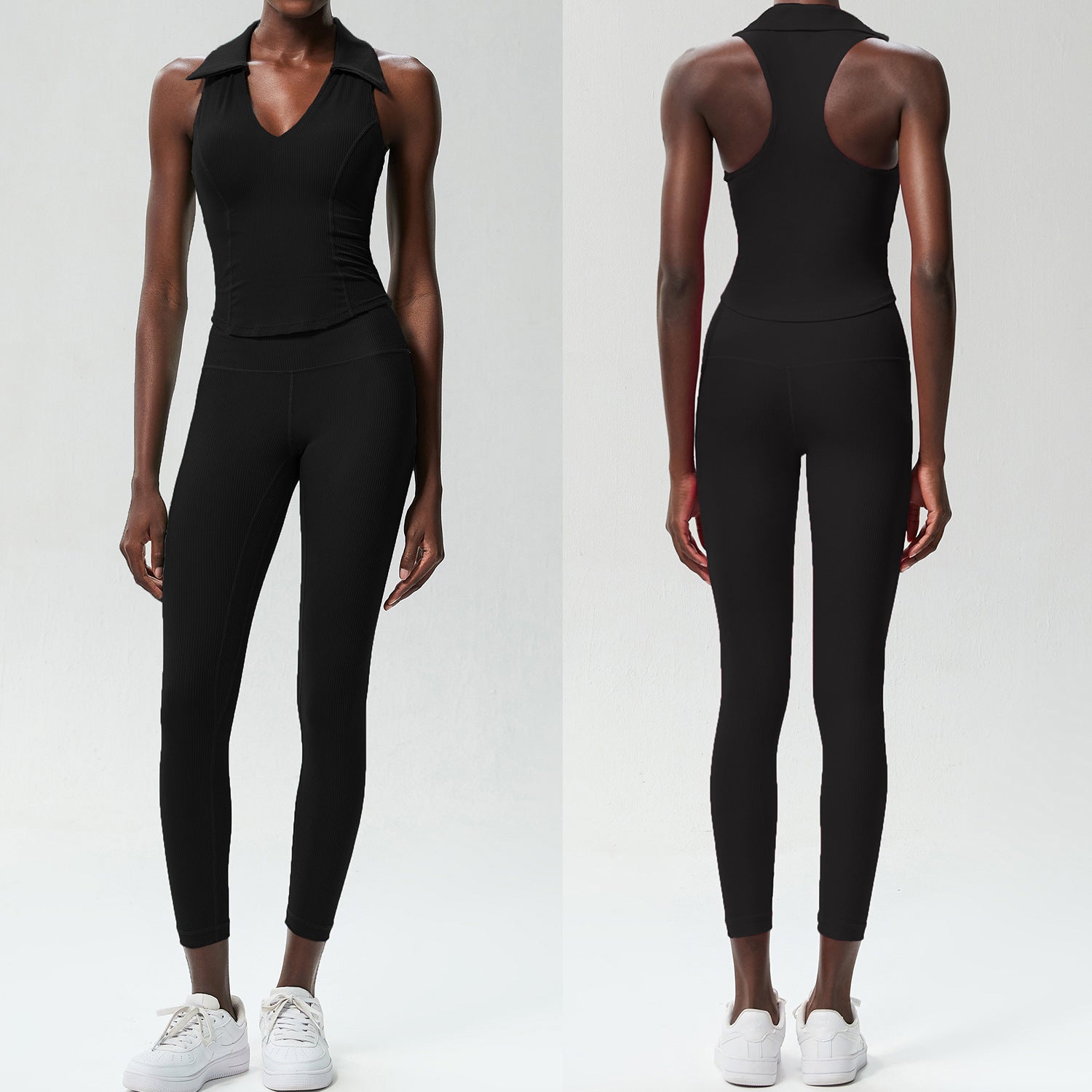 Women's Tight Large Size V-neck Sports Fitness Yoga Wear Two-piece Set